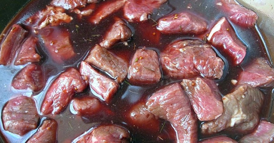 - Поместить мясо в глубокую посуду, залить пивом. Оставить при комнатной температуре на 2 часа.