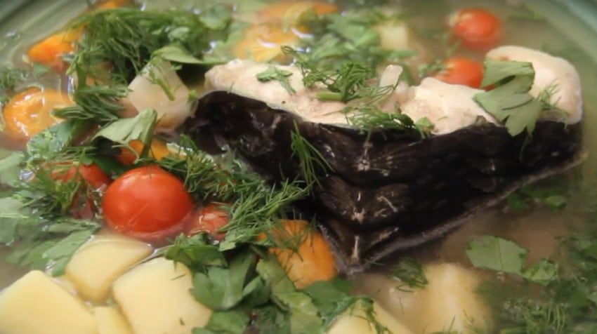 Такая уха отличается от традиционной двумя вещами – бульон из головы варится дольше, а сам суп получается гораздо более густым.