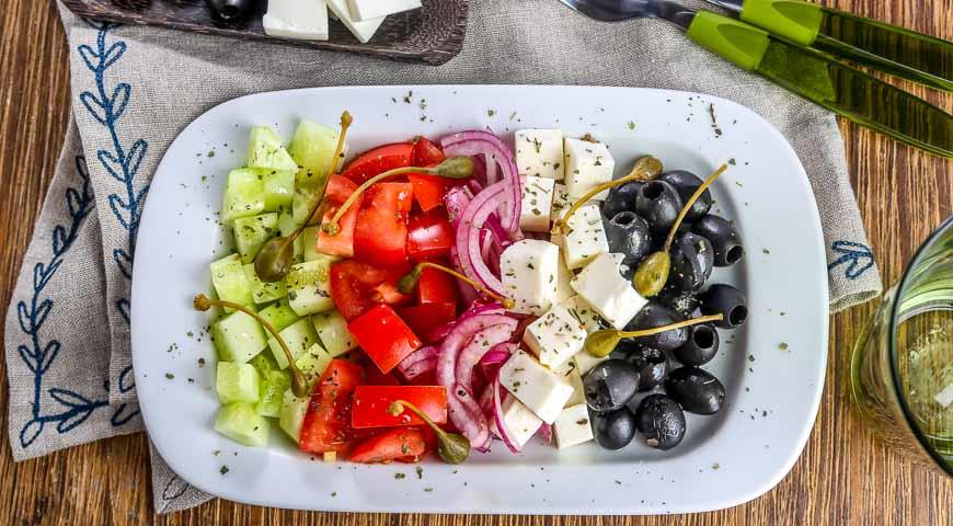 Греческий салат с орегано, укропом и мятой: пошаговый рецепт
