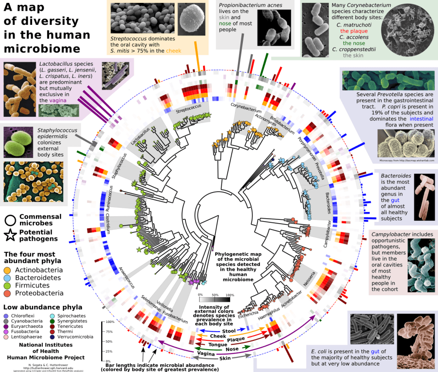 Человеческое тело не принадлежит ему одному — помимо его собственных клеток в нём живут и процветают многие триллионы микроорганизмов. Эволюция тоже не проходит в одиночестве: люди коэволюционируют вместе со своими микробами. Совокупность всех микроорганизмов (бактерий, архей, грибов), живущих в теле человека и на его поверхности, называют человеческим микробиомом.