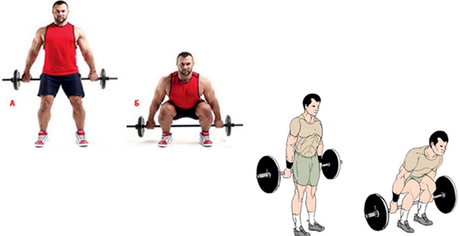 - Нужно взять гриф чуть шире плеч и также расставить ноги.