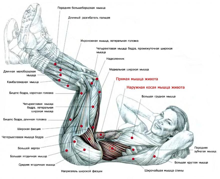 - Особенно активно прорабатываются прямые и косые мышцы живота.