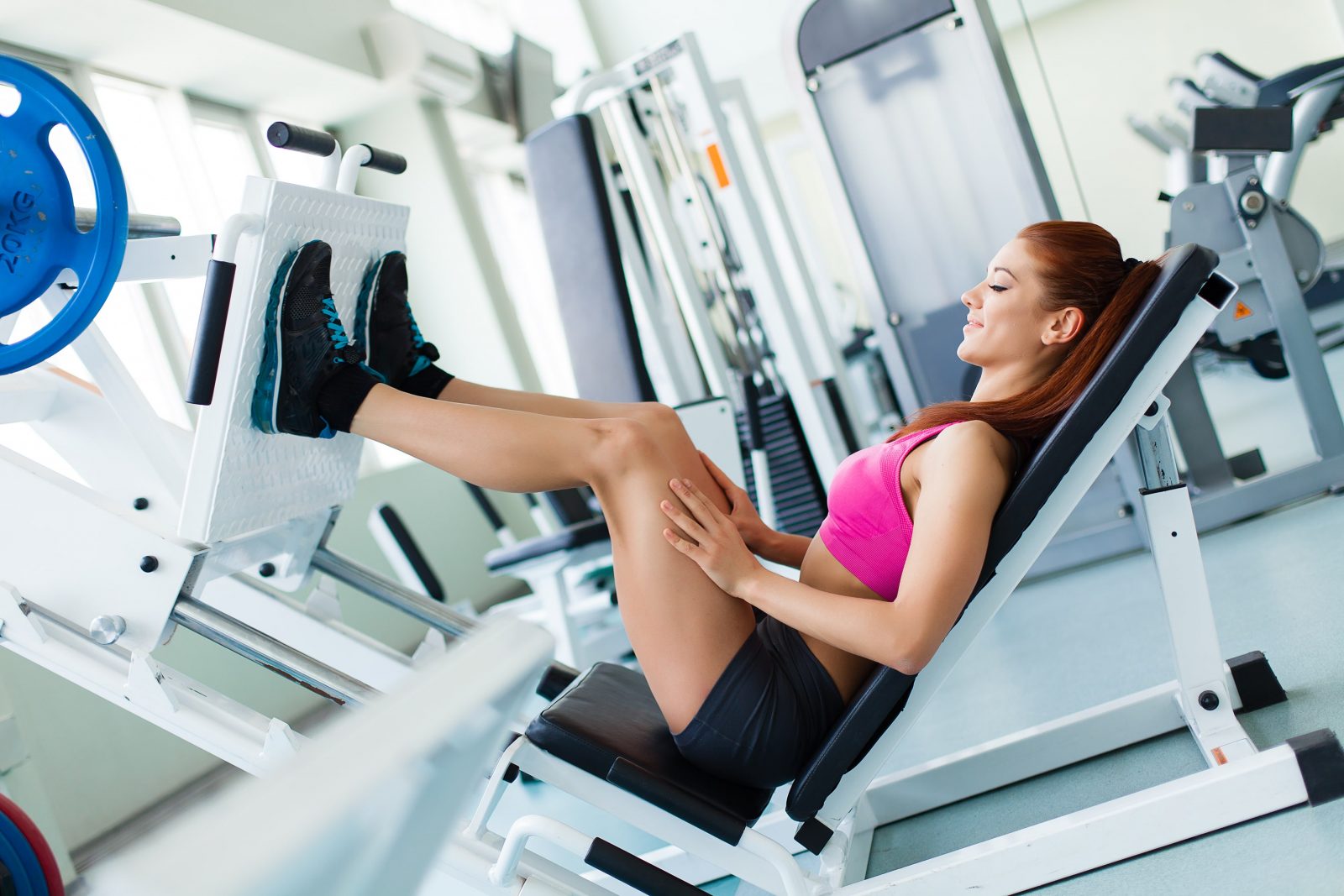 - Движение можно и нужно выполнять после предварительного утомления мышц ног, это поможет не «подрабатывать» квадрицепсами. В этом отношении положительно повлияет сочетание тренировки ног со «складкой» в конце