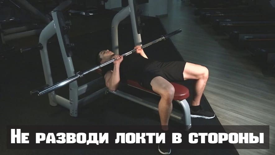 У неопытных спортсменов локти имеют обыкновение «разъезжаться» в стороны во время опускания штанги, что может привести к серьезным травмам локтевых суставов. Чтобы этого избежать, старайтесь ментально концентрироваться на положении рук, будто бы стараясь прижаться ими к ребрам.