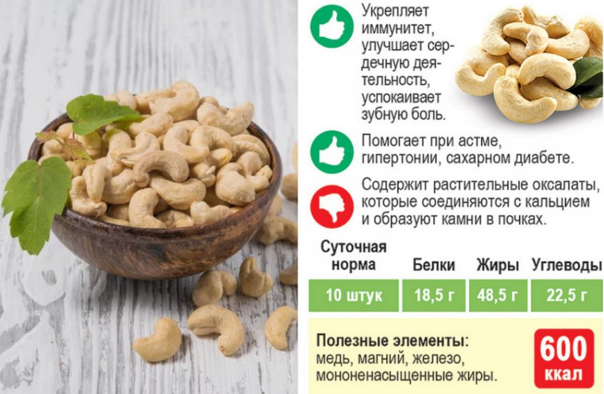 | Кешью жареный | 17,5 | 42,2 | 30,5 |