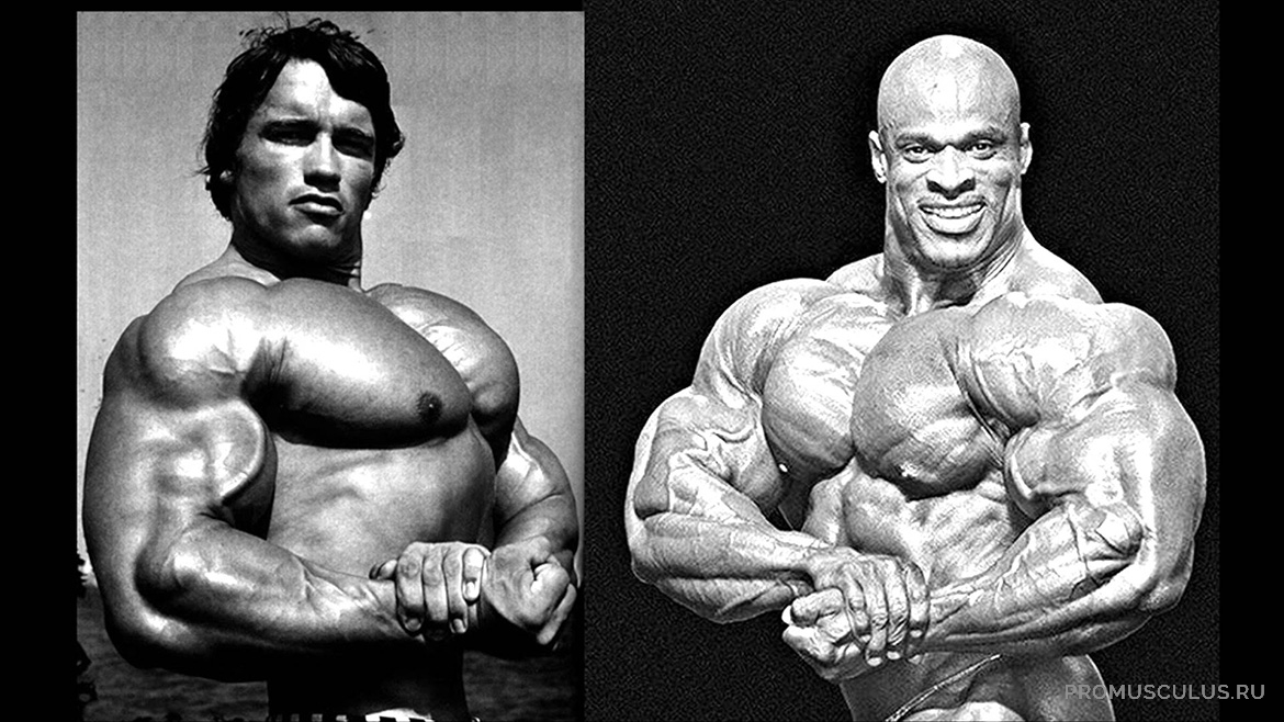 Арнольд Шварценеггер и Ронни Колеман: разница в весе ~30 кг… стероиды