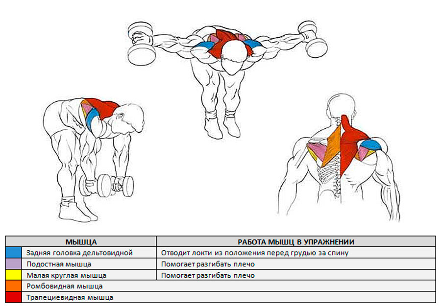 Как накачать плечи. с помощью разведений в наклоне? Прежде чем приступать к описанию техники, кратко охарактеризуем само упражнение. Основная мышца, на которую приходится большая часть нагрузки при его выполнении – задний пучок «дельт». Он принимает активное участие в движениях плечевого сустава, таких, как отведение и маховое движение назад. Развитие этой мышечной зоны очень быстро отражается на внешнем виде спортсмена – придает рельефной «бугристости» спине и дополнительный объем рукам при взгляде сбоку.